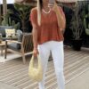 Accessoires portés par le mannequin : Boucles d’oreilles 206, Blouse DOSSA, Sac BENODET Or, Basket VALENCIA